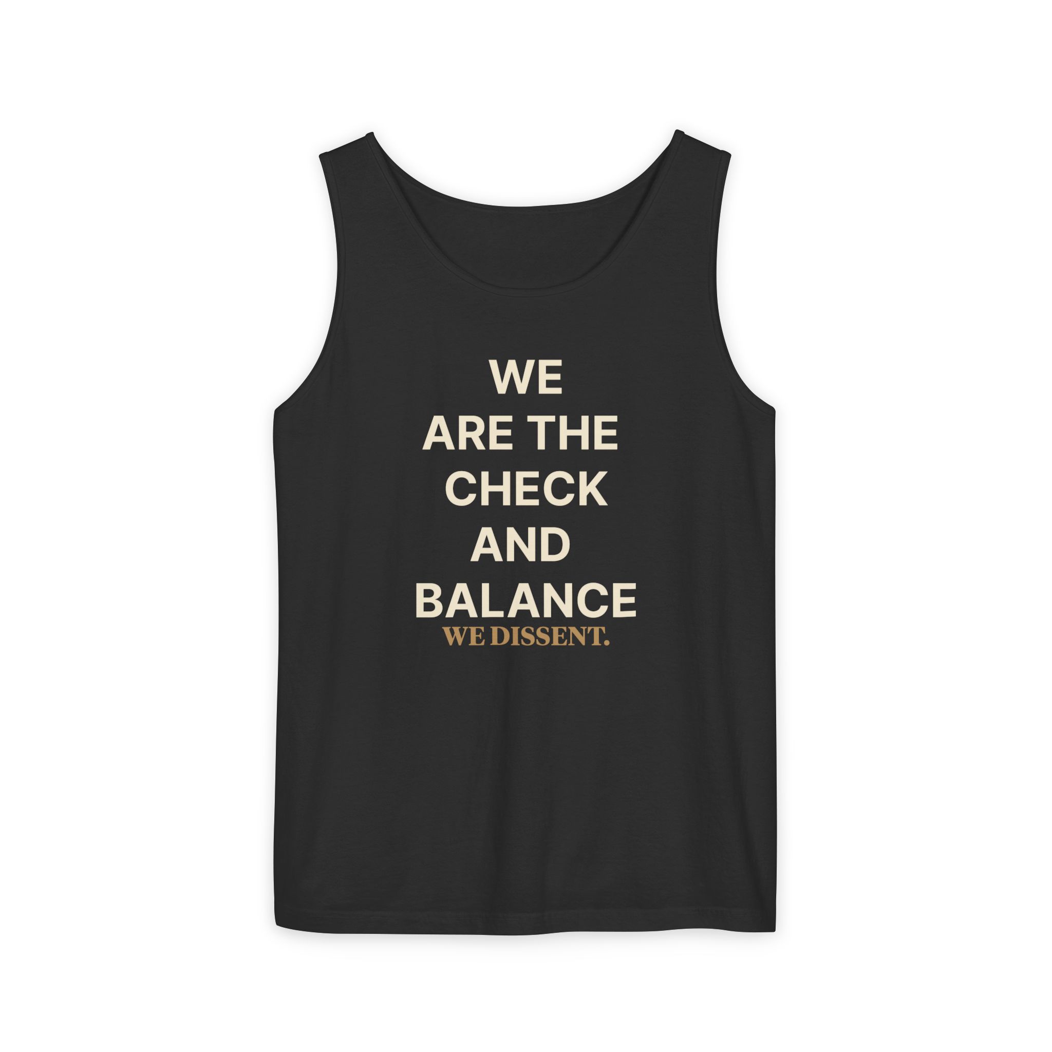 A stylish and comfortable tank top that says “We Are The Check and Balance”, perfect for activists and supporters of the Constitution of the United States of America. This garment gives a sense of empowerment and patriotism, making it ideal for rallies, protests, and Fourth of July celebrations. The relaxed fit and soft fabric make it a versatile piece for everyday wear.